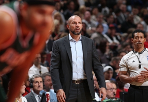 CHICAGO, IL – APRIL 18: Head coach Jason Kidd of the Milwaukee Bucks during the game against the Chicago Bulls in Game One of the Eastern Conference Quarterfinals during the NBA Playoffs on April 18, 2015 at the United Center in Chicago, Illinois. NOTE TO USER: User expressly acknowledges and agrees that, by downloading and or using this Photograph, user is consenting to the terms and conditions of the Getty Images License Agreement. Mandatory Copyright Notice: Copyright 2015 NBAE (Photo by Gary Dineen/NBAE via Getty Images)